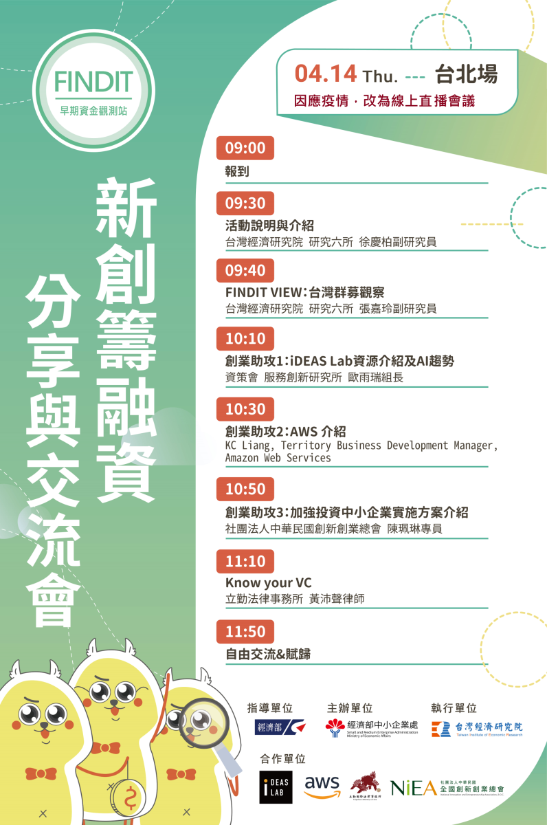 #新創籌融資分享與交流會 #台北 #Taipei #Webinar #jitsimeet #ideaslab #立勤國際法律事務所 #社團法人中華民國全國創新創業總會 #AWS