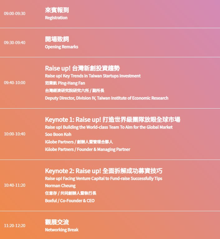 - 活動對象:新創企業、創投、早期投資人、有志投入創新創業者,皆歡迎參加,活動全程免費。