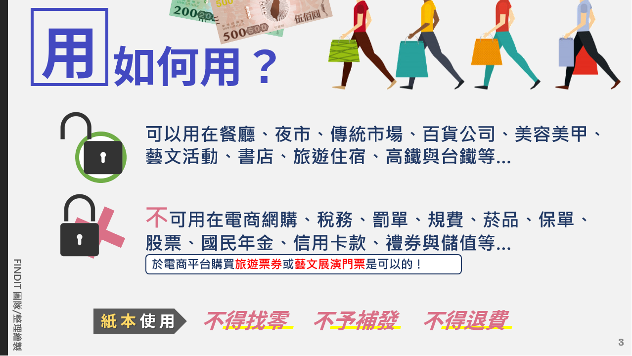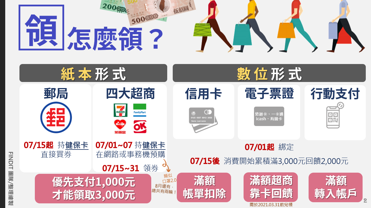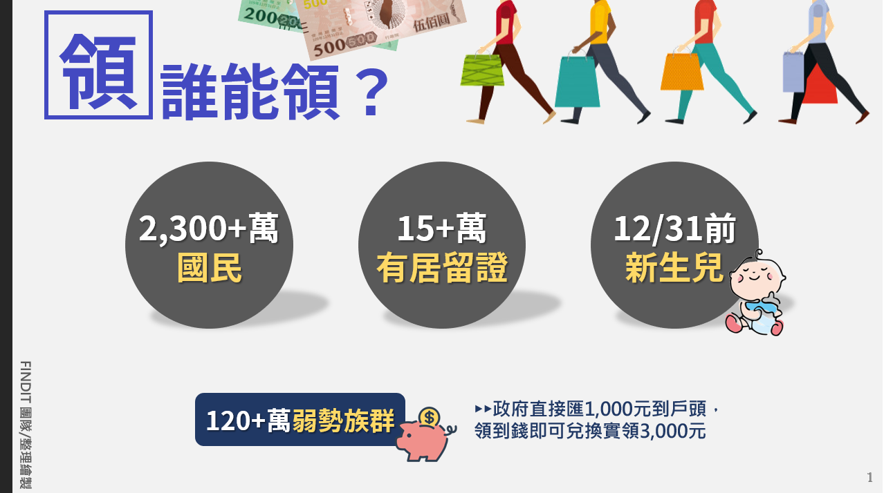 至於哪些人可以領、使用上有哪些規範、商家收到後要如何兌換等細節問題,FINDIT團隊為您整理超實用攻略,讓您能夠輕鬆領、輕鬆花,真正落實「樂活防疫新生活」。
