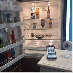 冰箱攝影機與智慧手機結合,只要把Fridge Cam裝在冰箱門內側,每當使用者打開冰箱,攝影機會拍下冰箱裡的情況,可隨時查看冰箱裡少了什麼,也可以避免重複購買。預計於2017年第一季推出售價$149.99美元。 |