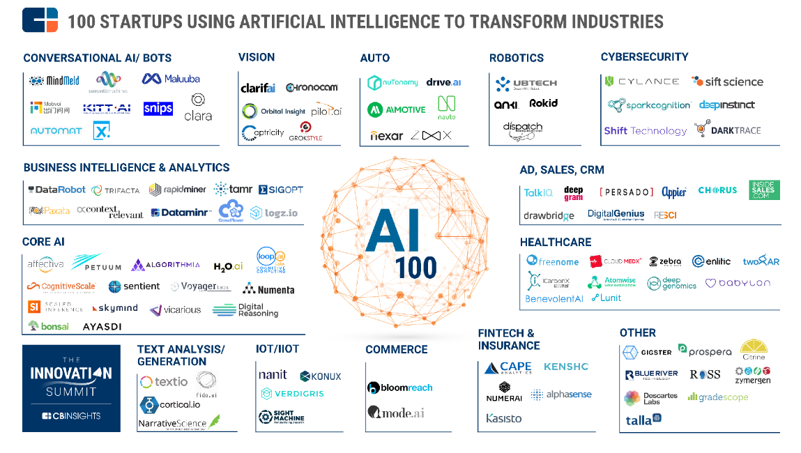 CB Insights在2017年1月11日,發佈了2017 AI100榜單,評選出全球最有創新實力的100家AI公司。