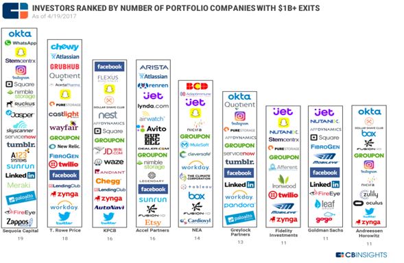 獨角獸退場投資人排行榜 (2012~4/19/2017)
