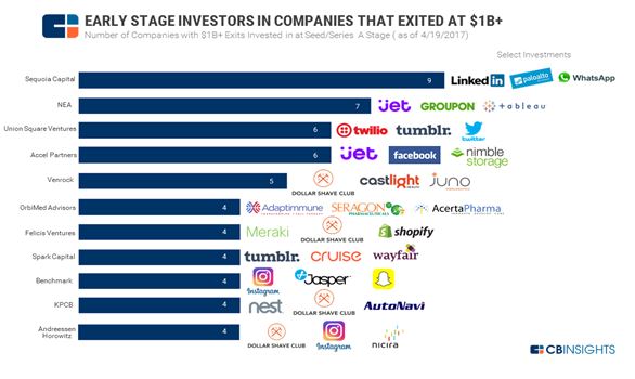 最精明的投資人是在獨角獸企業早期階段(種子輪到A輪)就參與投資者,當獨角獸企業退場時便獲得數倍報酬。其中紅杉資本又居最活躍早期投資人榜首,9家早期投資的獨角獸退場,包括:LinkedIn, Palo Alto Networks與WhatsApp。