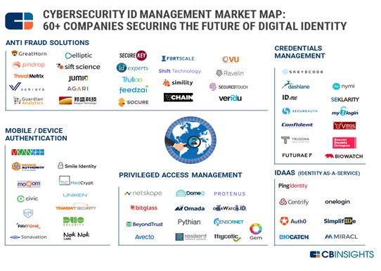隨著網路攻擊的數量和嚴重程度不斷上升,與身份認證相關的資料安全和驗證的需求至關重要。CB Insights將身份管理領域定義為網路安全公司其核心產品或服務用來認證其憑據以確定使用者身份,並授權使用者透過適當管道取得數位資源。