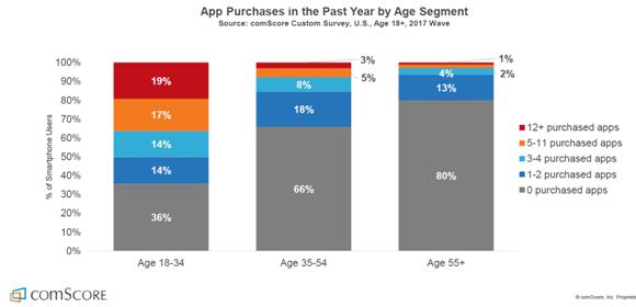 儘管並不特別富裕,但千禧世代對於花錢購買App或是於App內進行購買行為的接受度最高(64%),每個月平均每5人就有1人花錢購買一個以上的App,在過去一年內,有46%的人曾花費至少5美元購買App。