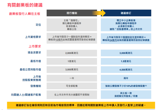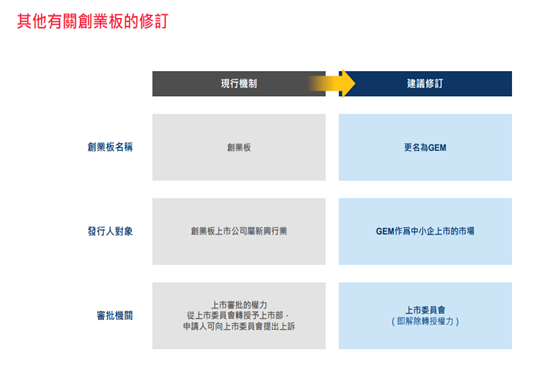 為檢討創業板及修訂《創業板規則》及《主板規則》,聯交所徵詢公眾對以下主要建議內容的意見: