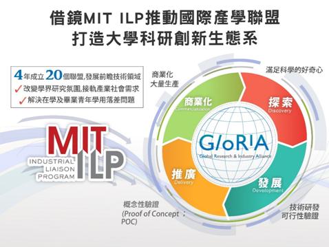 為了讓臺灣的大學及企業創新研發能量與全球產業供應鏈接軌,科技部將投入相關資源,鼓勵大學結盟國內外一流廠商,組成具前瞻發展性的「國際產學聯盟」(Global research & industry alliance, GloRIA),經由與國內外企業的合作,導入產業的資源至學界,在各領域中打造創新生態圈,讓學術研究達到加乘效果,並走出象牙塔,創造社會效益及產業價值。