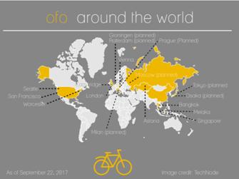 根據中國艾媒諮詢(iiMedia Research)數據顯示,2016年中國共享單車市場規模達12.3億元,預計2017年底將達102.8億元,成長可望達735.8%;截至今年九月,摩拜在中國平均每天使用人數為865萬人、ofo則是965萬人。然而中國城市對於共享單車的容忍似乎到了上限,自今年八月開始政府出手干預單車投放,中國陸續也傳出單車倒閉潮。主要兩大巨頭摩拜及ofo雖然各自出招解決停車亂象,但中國國內的市場飽和更凸顯拓展海外市場的勢在必行。
