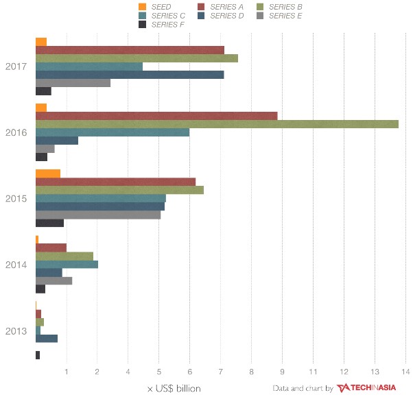 【新興領域最新發展與獲投消息】Tech In Asia:2017年中國科技公司獲投588億美元