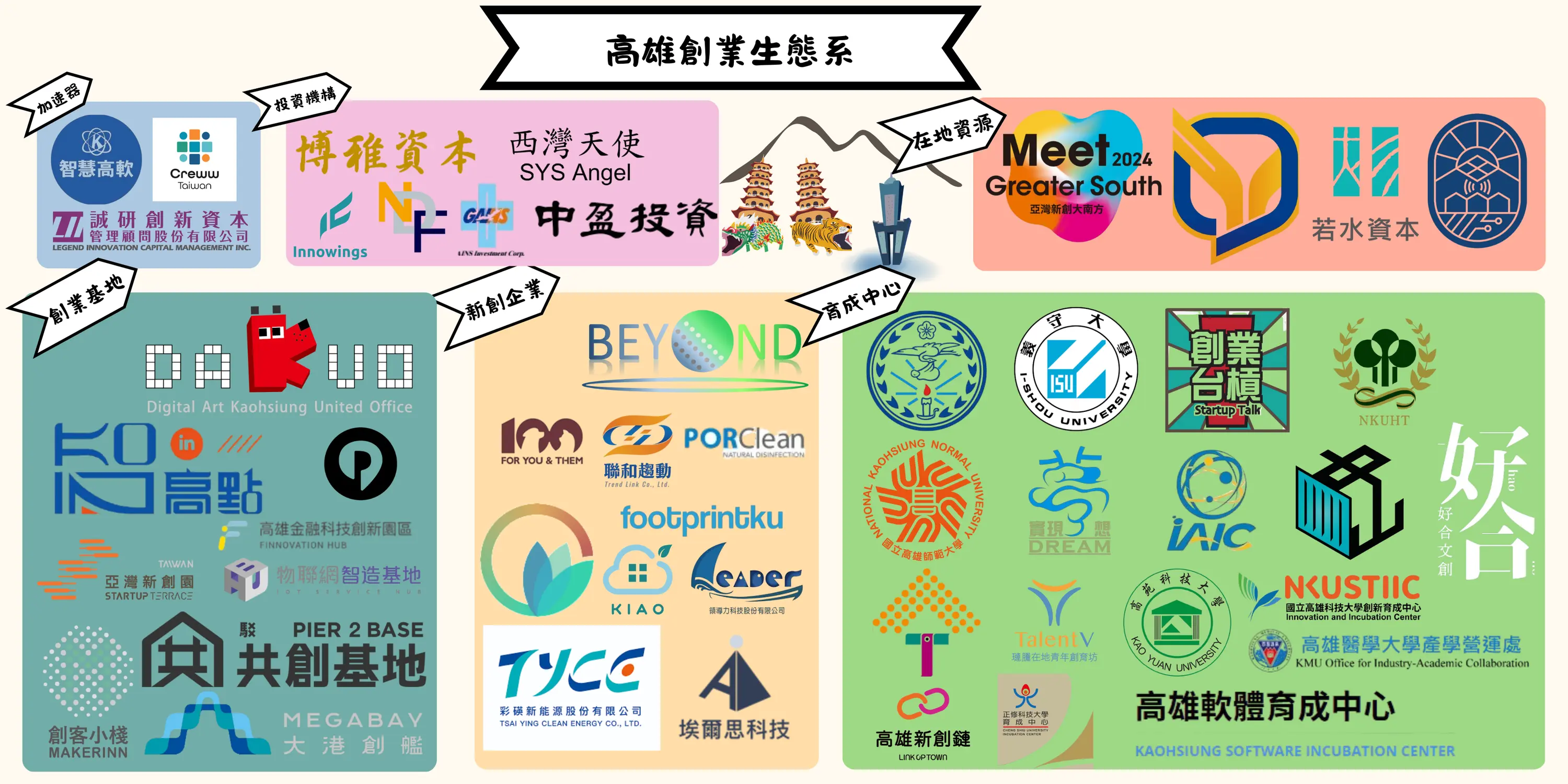 創育機構在新創生態系中扮演關鍵推動者角色,透過提供辦公空間、專業輔導、資金媒合與市場鏈結等多元支持,協助新創企業加速成長、降低創業風險,提升成功率,進而帶動整體創業生態的健全發展。以下將簡要介紹高雄地區主要的創業基地、加速器與育成中心,並整理可運用的政府創業資源。