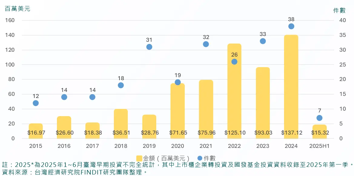 圖4 2015年-2025年6月臺灣食農科技領域早期投資趨勢