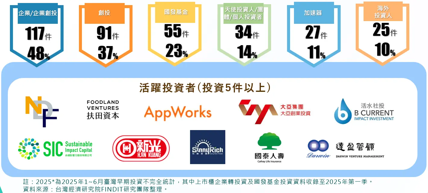 圖19 2015年-2025年6月臺灣食農科技領域獲投統計-投資人分布