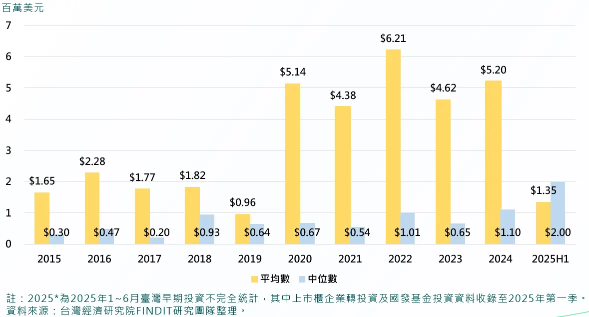 2.早期投資金額-2025年中位數首度超越平均數,資金分配更趨平均