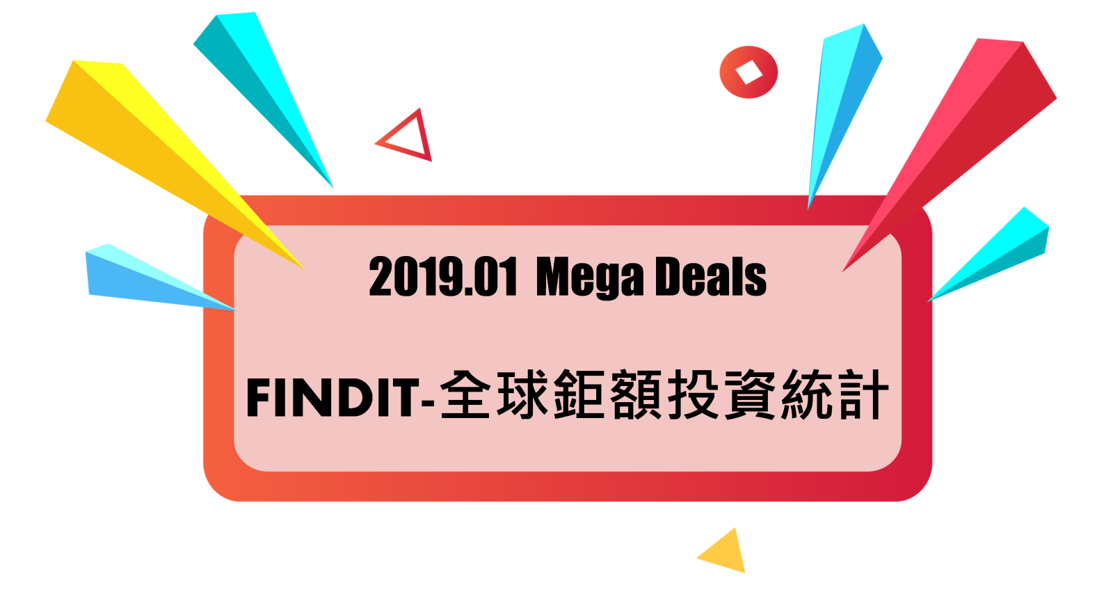 - 資料統計說明:FINDIT團隊以Crunchbase 資料庫為基礎,進行過濾篩選獲投型態是股權投資(不含債權投資、ICO),投資交易金額在1億美元以上者,稱為鉅額交易(Mega Deals),鉅額交易件數多寡通常是左右該年整體股權投資市場向上或向下的重要因素,值得追蹤分析。